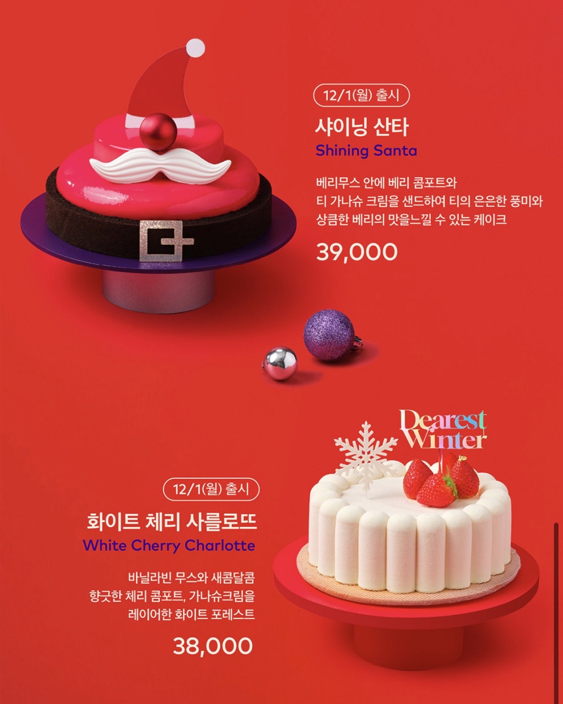 올해 크리스마스에 잘 어울리는 케이크를 미리 준비해보시길 바랍니다.